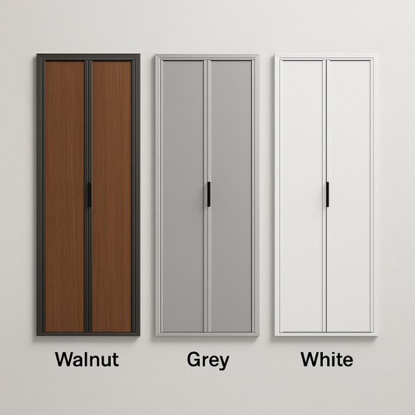 Bi-fold opening saves room, ideal for small or narrow spaces.